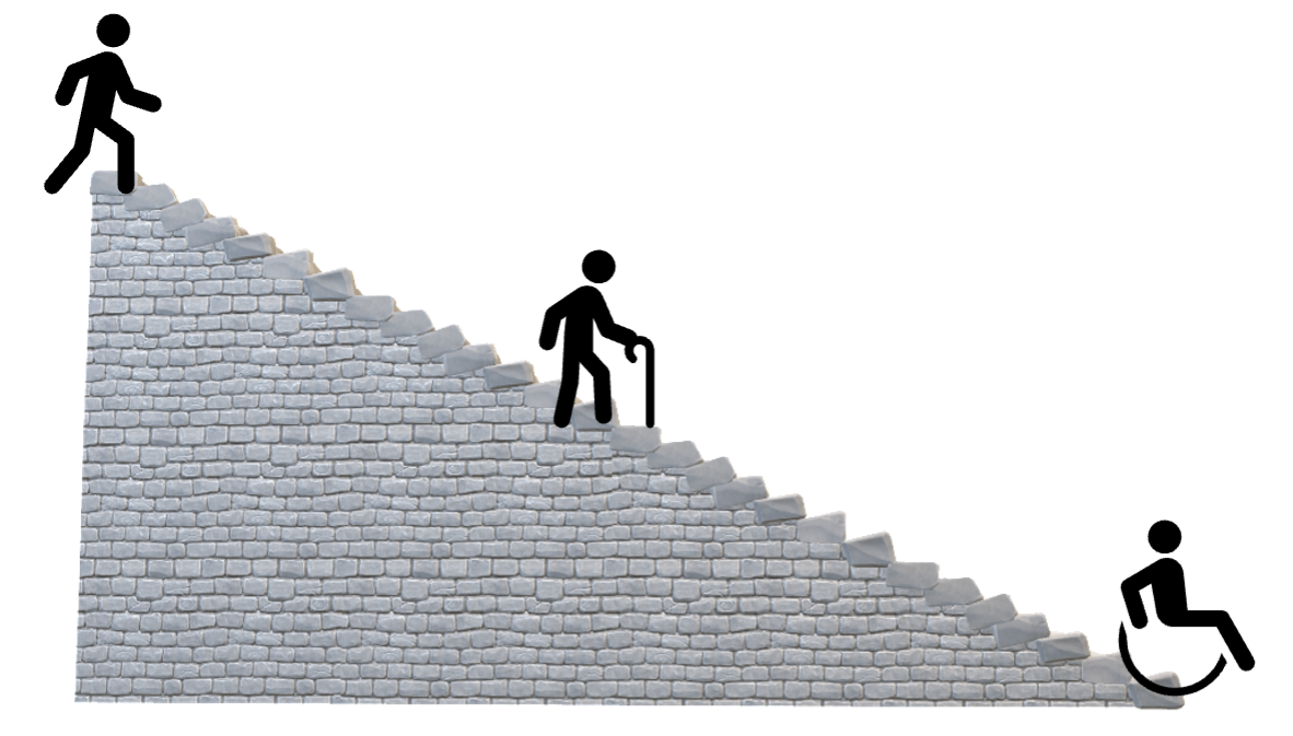 Zudem kann sich eine Gangunsicherheit kann sich entwickeln, sodass die betroffenen Patienten allmählich Gehhilfen benötigen oder bemerken, dass sie sich beim Treppengehen zur Sicherheit am Geländer festhalten müssen. Das Gangbild kann sich mit der Zeit erheblich verschlechtern, es wird dann immer «eckiger», gleich einem Roboter und ruckeliger. Schliesslich kann auch eine Entleerungsstörung der Harnblase hinzukommen.