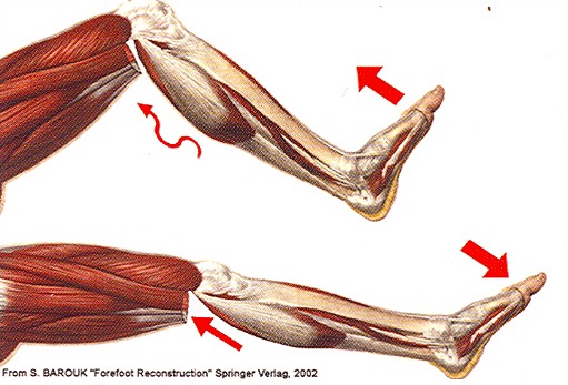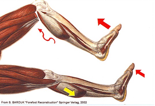 Durch einen kleinen Schnitt in der Kniekehle können die Faszien durchtrennt werden, die auf den Wadenmuskeln aufliegen – die Muskeln selbst werden dabei nicht verletzt, die Sehnen auch nicht. Durch Strecken des Beines und maximale Beugung des Fusses resultiert ein Auseinanderweichen der Enden von ca. 3cm, was zu einer deutlichen Entlastung des Vorfusses führt. Die Enden werden mit der Zeit narbig überbrückt, es ist also kein Kraftverlust in den Waden zu erwarten (und tritt tatsächlich nicht auf!).
