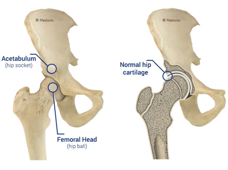 Schematische Darstellung einer gesunden Hüfte (Fa.Medacta)