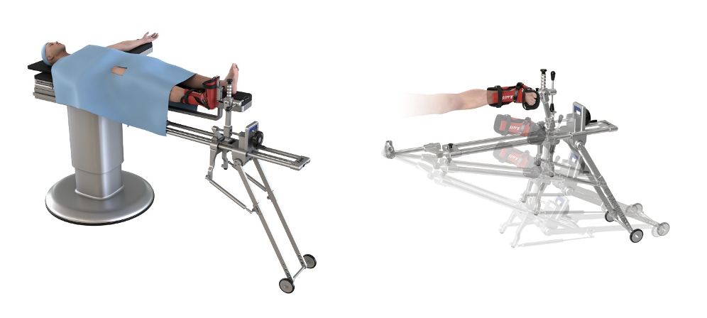 Lagerung des Patienten für die minimalinvasive Hüftprothese (Fa. Medacta)