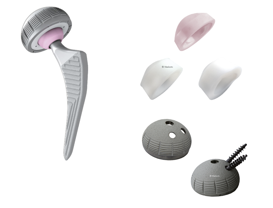 Verschiedene Komponenten der Hüftprothese (Fa. Medacta)