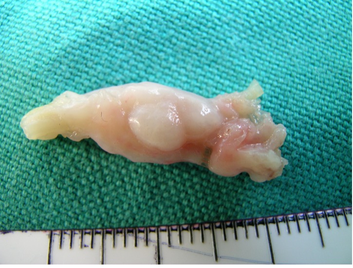 Das Operationspräparat zeigt, wie gross diese Schwellungen werden können