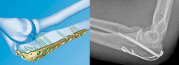 Beispiel für die Versorgung von ellenbogengelenksnahen Brüchen mit Platten-Schraubensystemen (Synthes)
