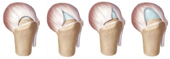 Die Schulterarthroskopie mit Entfernen von entzündetem Gewebe in Kombination mit einer Erweiterung des Raums zwischen Schulterdach und Oberarmkopf (Acromioplastik) kommt bei kleinen Rissen oder Anrissen der Sehnen zur Anwendung, welche keine Refixierung brauchen. Auch bei sehr ausgeprägten Schädigungen der Rotatorenmanschette, welche operativ nicht mehr rekonstruierbar sind, ist von Fall zu Fall eine Operation sinnvoll. Die verletzten Sehnenanteile und entzündliches Gewebe werden entfernt. Ziel dieser Eingriffe ist vor allem die Schmerzreduktion. Sekundär kann daraus eine verbesserte Funktion resultieren.