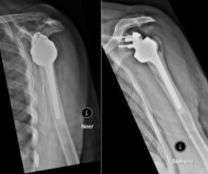 Postoperatives Röntgenbild einer inversen Schulterprothese