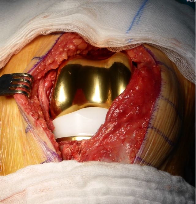 Intraoperativer Befund nach Implantation der TiNbN beschichteten Prothese