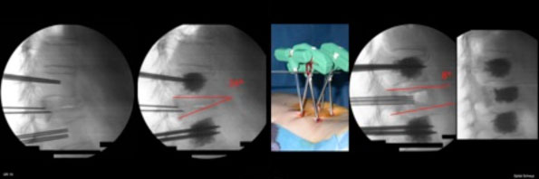 Bei der Vertebroplastie, Kyphoplastie und Lordoplastie werden in den gebrochenen Wirbelkörper über kleine Hautschnitte zwei oder mehrere Hohlnadeln eingeführt. Über diese wird zähflüssiger Knochenzement (PMMA) in den Wirbelkörper eingespritzt.